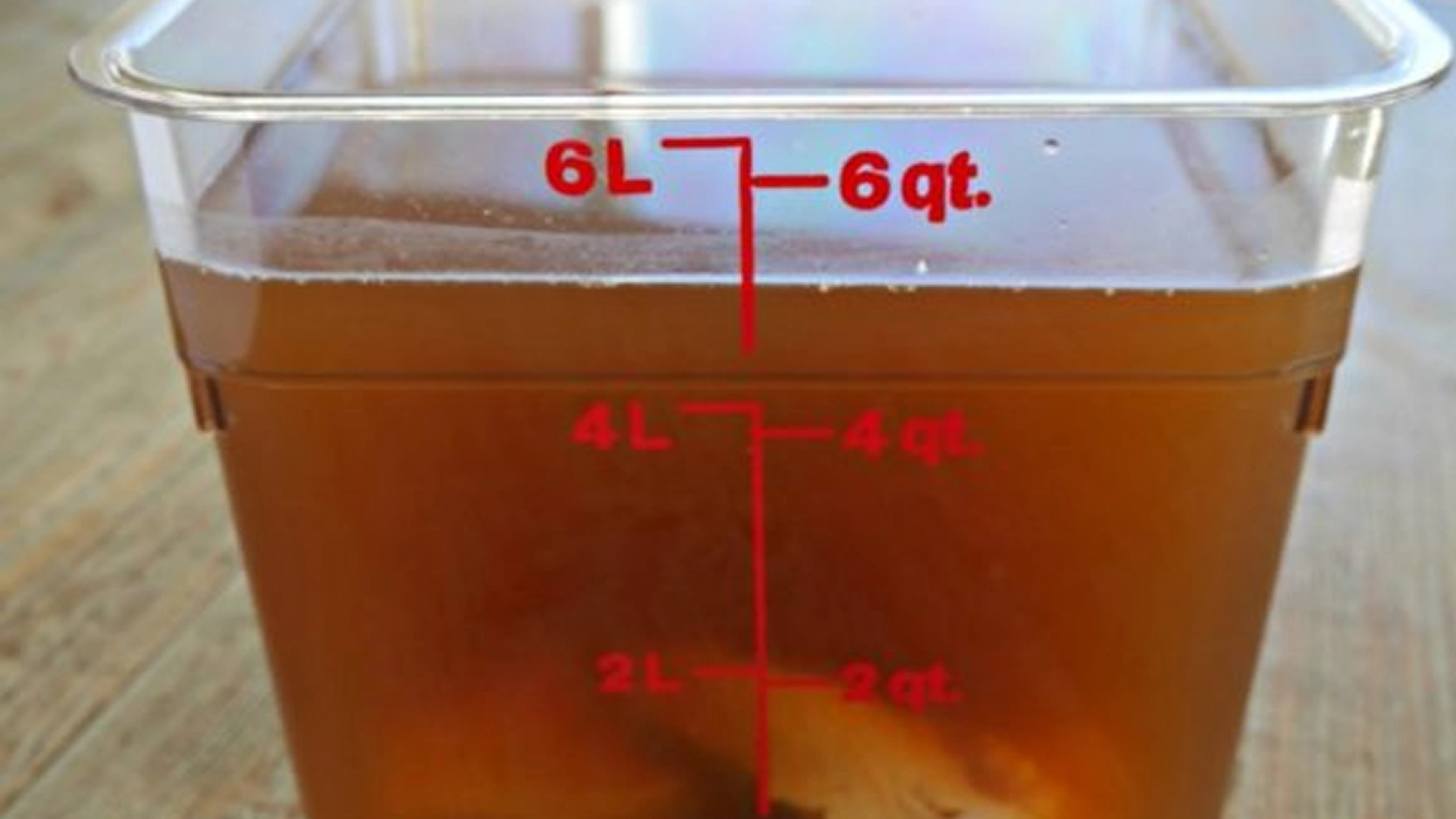 In a large pot, combine 1 quart of water with the salt, sugar, and garlic and bring to a boil. Once the sugar and salt are dissolved, add the remaining quart of water to the pot and allow to chill to 38 degrees F. Transfer the brine to a clean container, one large enough that will hold the chicken and brine without overflowing.