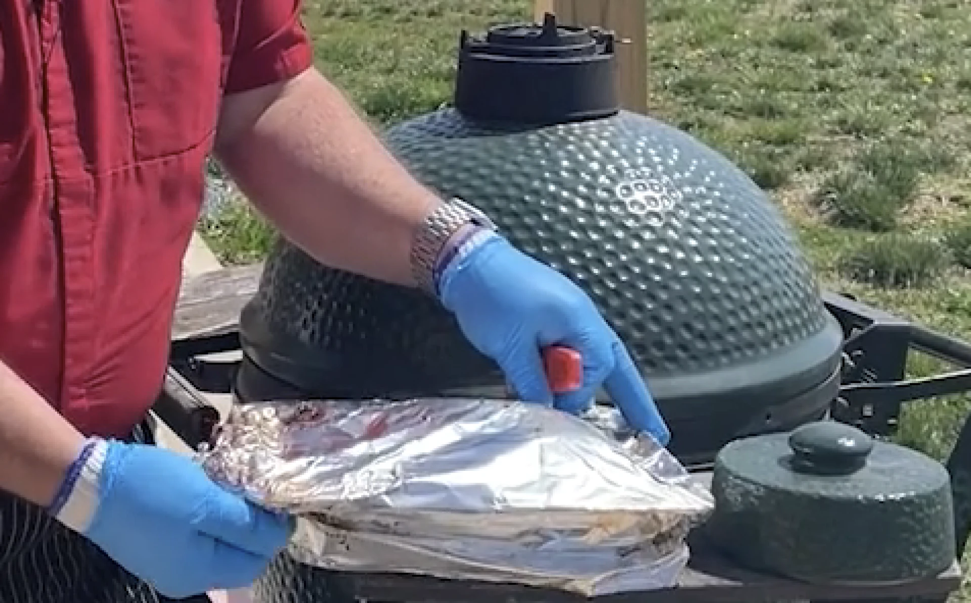 Once the turkey reaches 135°F/57°C remove it from your smoker and place it into a half foil pan, then cover it with foil.