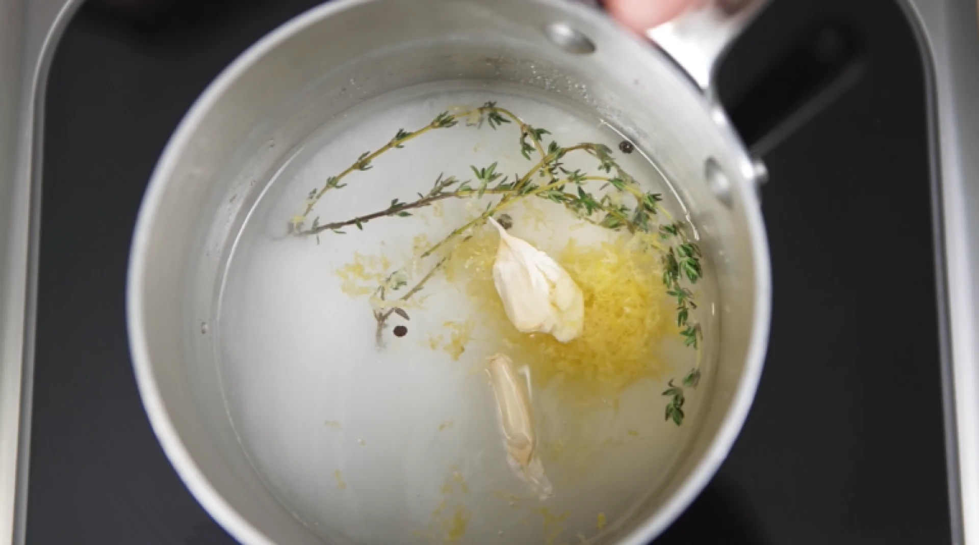 In a pot, add all the ingredients and bring to a boil. Whisk slowly to dissolve the sugar and salt. Once the liquid has boiled, cool it down to 4°C/40°F or below.