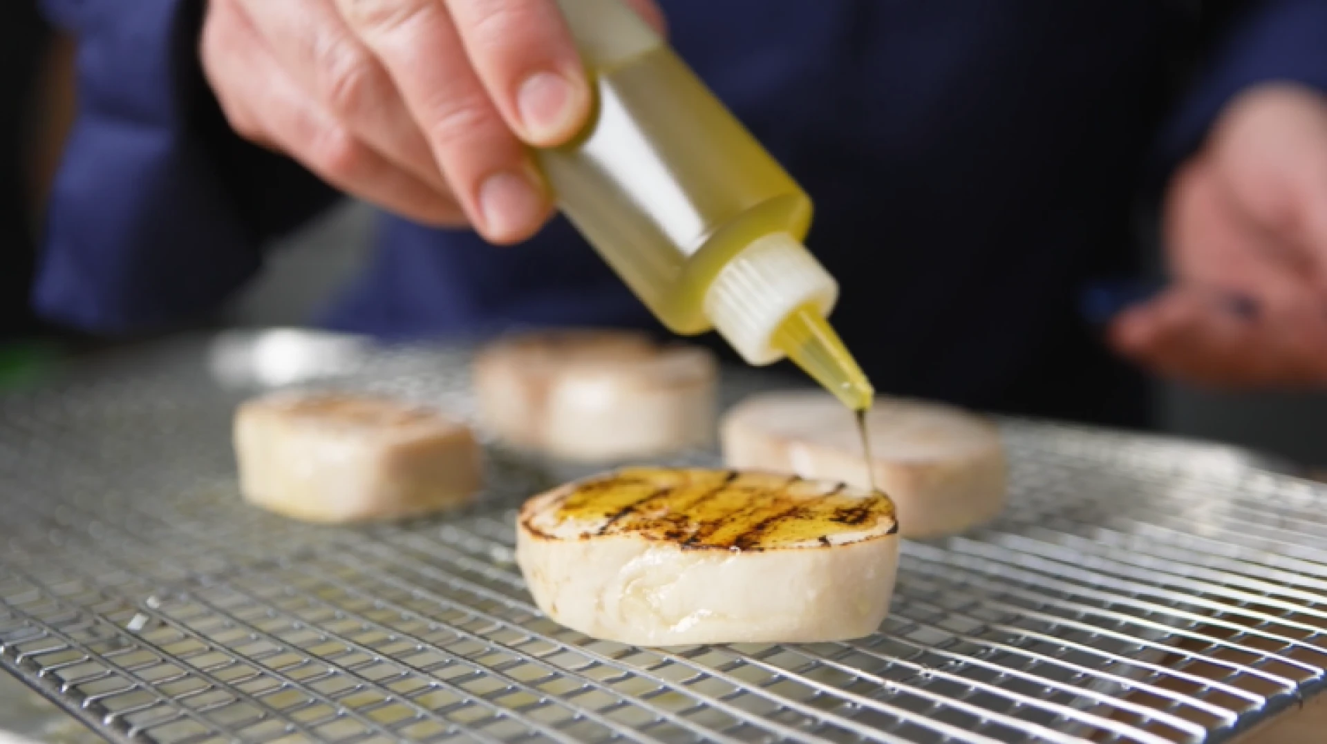Remove from the water bath. Using a wired rack, open the bag and allow the fish to rest on the rack to drain the excess liquid from the cooking process.