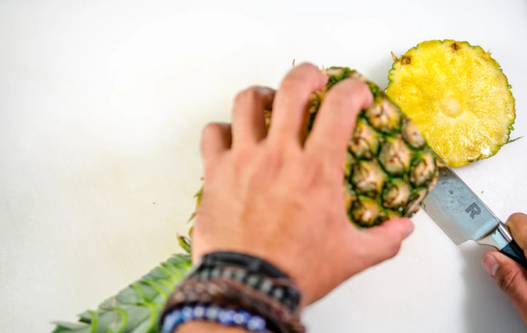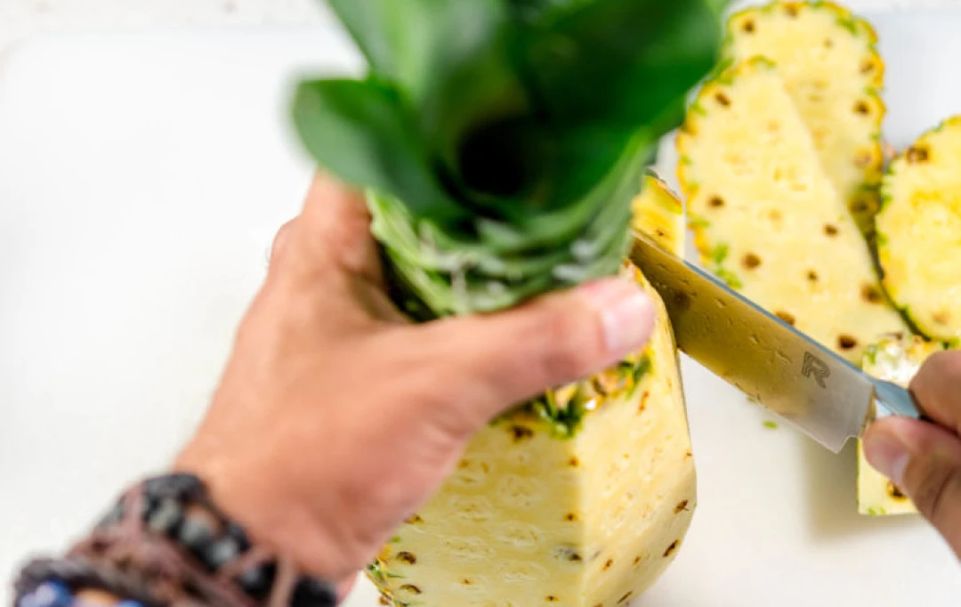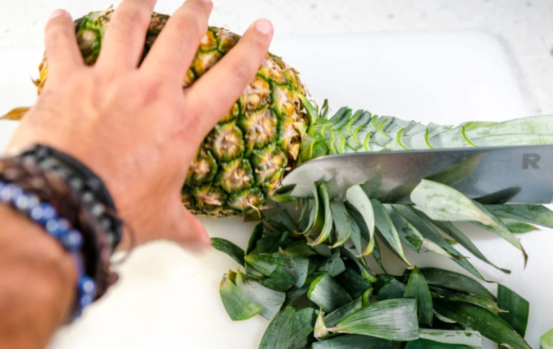 Remove one of the leaves, which should come out easily with only a little resistance. If it comes off too easily, it means the pineapple is overripe.