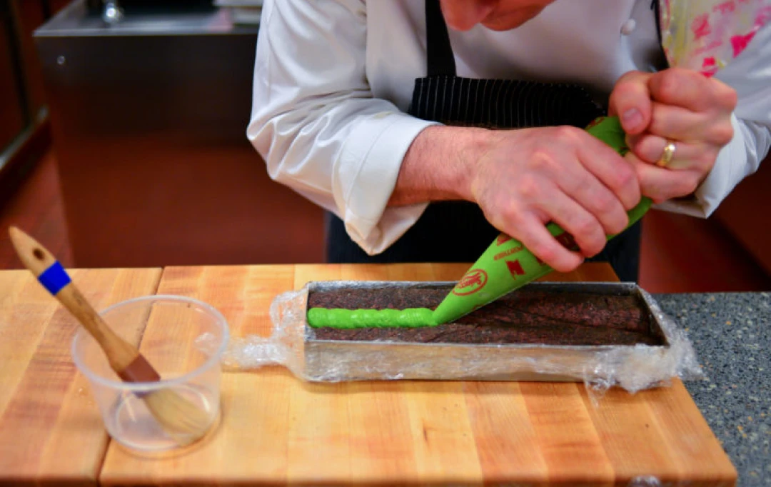 This is perhaps one of the most recognizable competition pieces in the Rosendale repertoire. The beef pave is what Rich used during the 2013 Bocuse d’Or in Lyon, France. Its striking appearance is due much in part by the uncommon shape of the beef tenderloin.