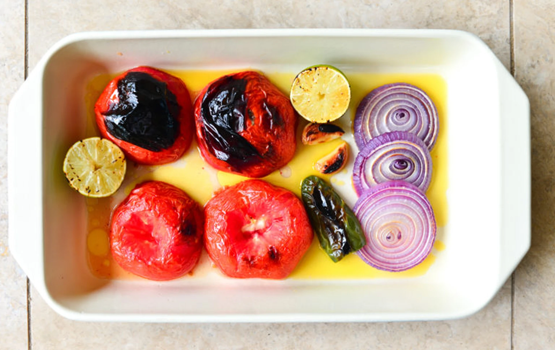 Brush the inside of a 2-inch half hotel pan with oil and then line with a layer of plastic wrap.