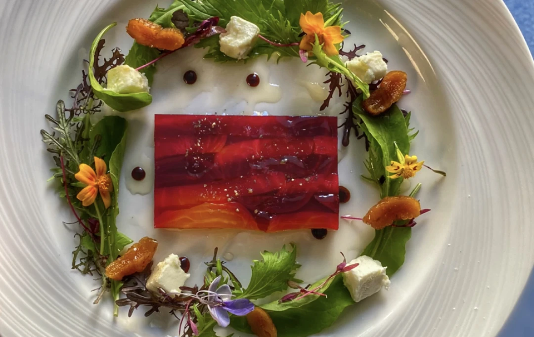 Beet Terrine is one of our most loved dishes at one of our branded restaurants that has been this light but beautiful and flavorful.