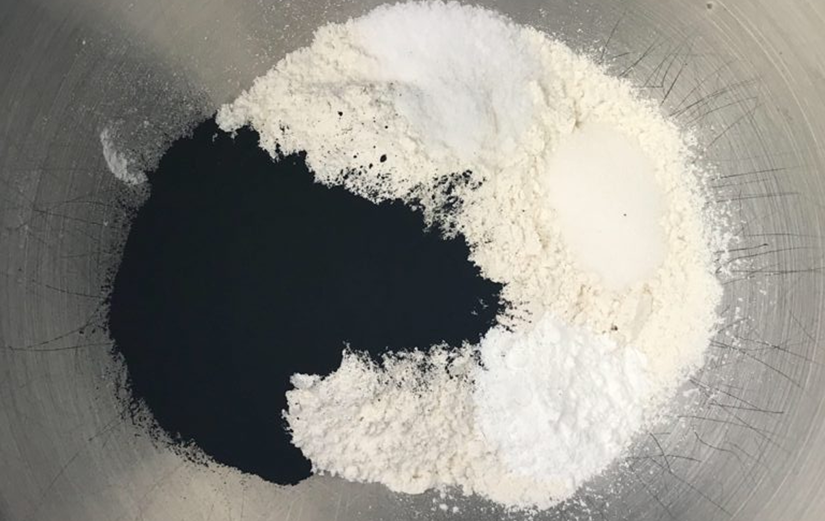 Begin mixing the dry ingredients until the mixture turns slightly black in color.
