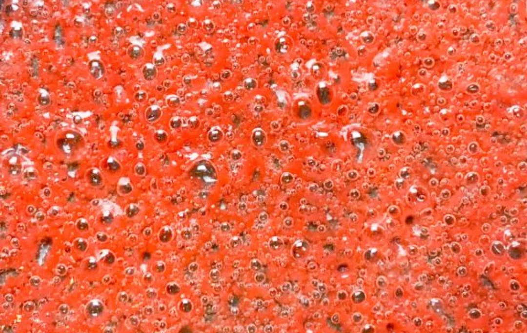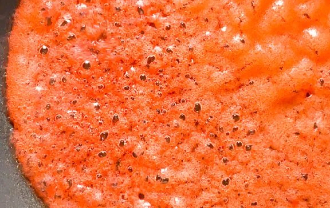 Keep the pan on medium heat and continue cooking. The air bubbles will multiply and start to spread which will create the coral effect.