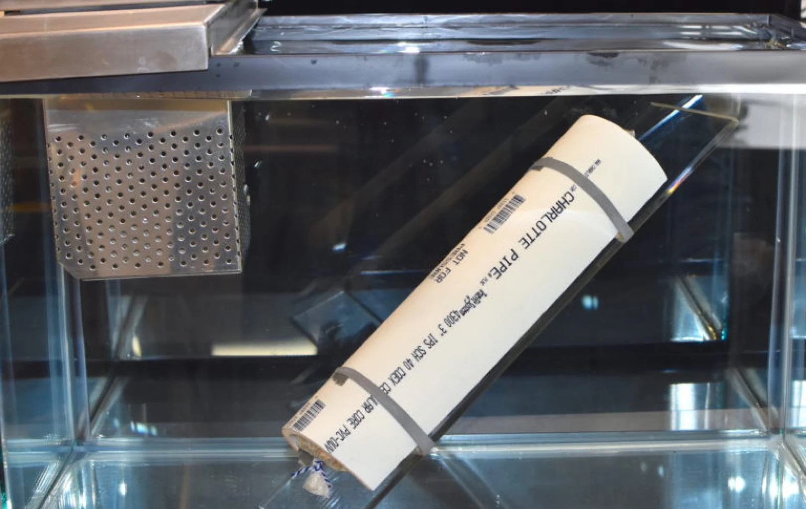 Tie both ends of the terrine with butcher’s twine and clamp the PVC and the plexiglass with 2 heavy rubber bands to ensure there is even tension on the terrine during the cooking.