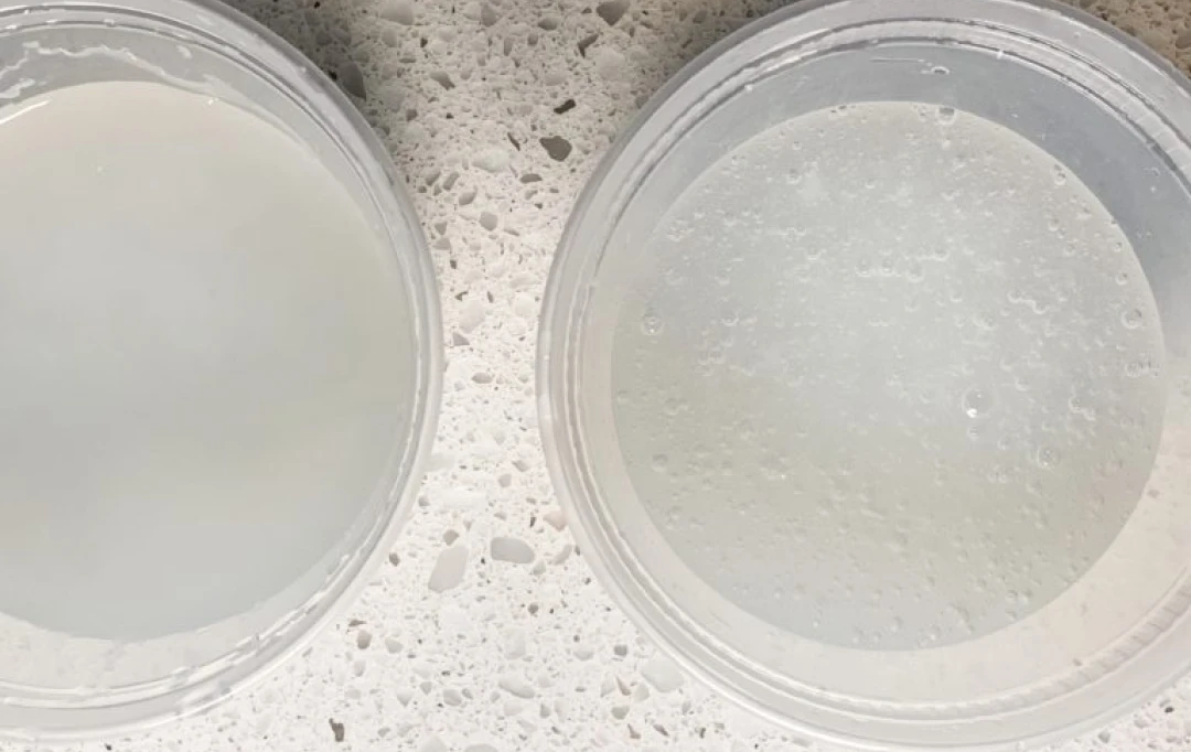 Place the prehydrated xanthan gum into a container deep enough to be vacuumed. Place the container into the vacuum machine to remove any air bubbles that were created from the initial blend. Start the vacuum process until all the air has been removed from the mix. Keep a close eye during the process to ensure the mixture does not spill over your machine.