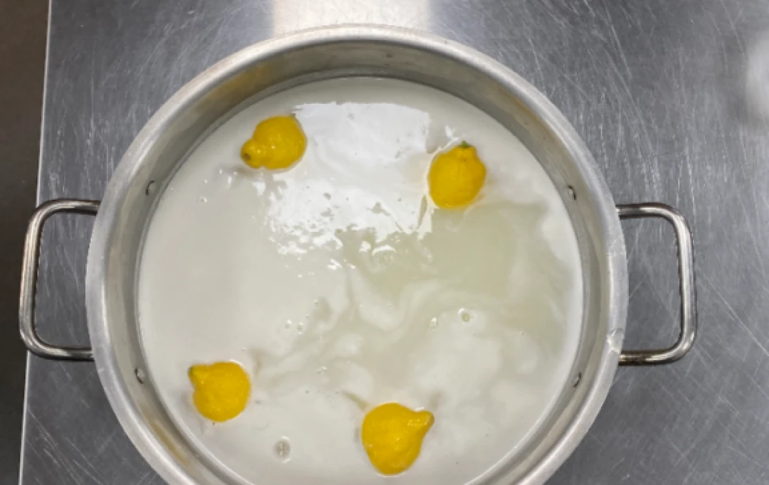 In a large rondeau pot, combine the flour, water, salt, and lemon. Whisk the mixture until completely diluted.