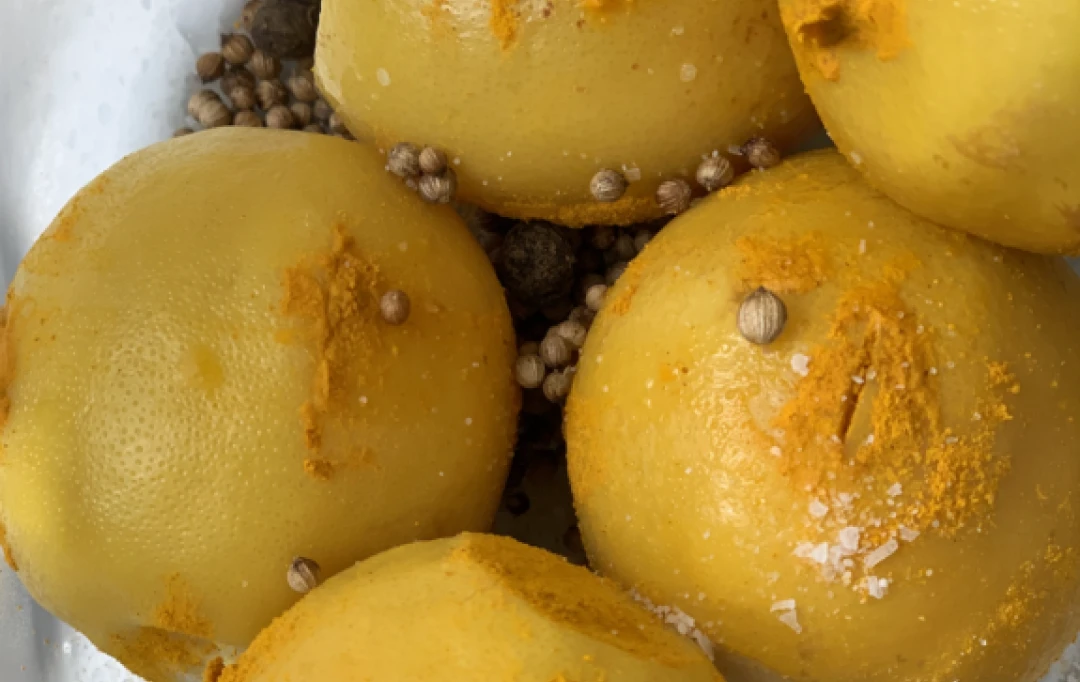 This recipe uses turmeric, coriander and allspice, which really highlight the intense lemony flavor of the pickle. We think you'll find them to be a tantalizing, bright addition to a wide variety of dishes—try serving them with fish, creamy pasta dishes, soups, or anything that can use a wonderful, intensely lemony flavor addition.