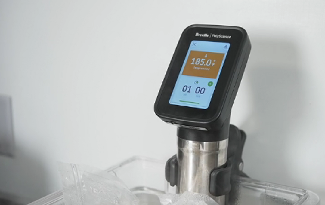 The bag is then tightly and cleanly sealed and placed into a preset circulator at 185F.
