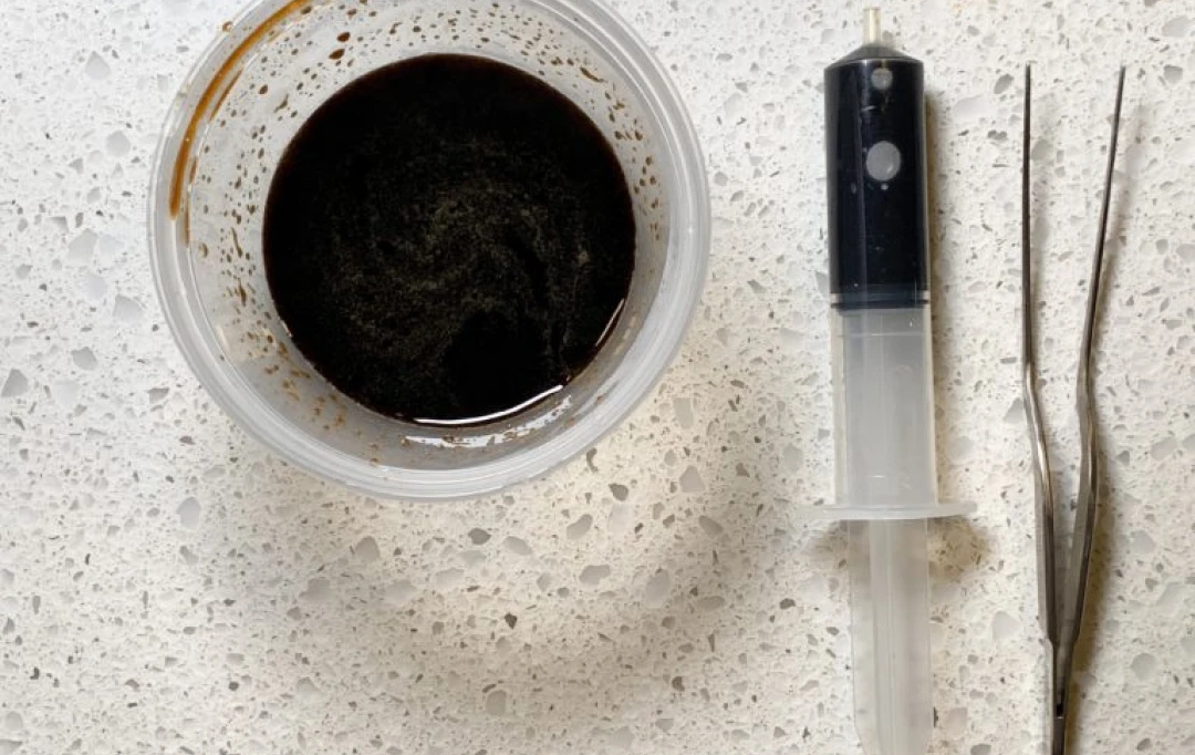 Fill a culinary syringe with the soy sauce and agar mixture.
