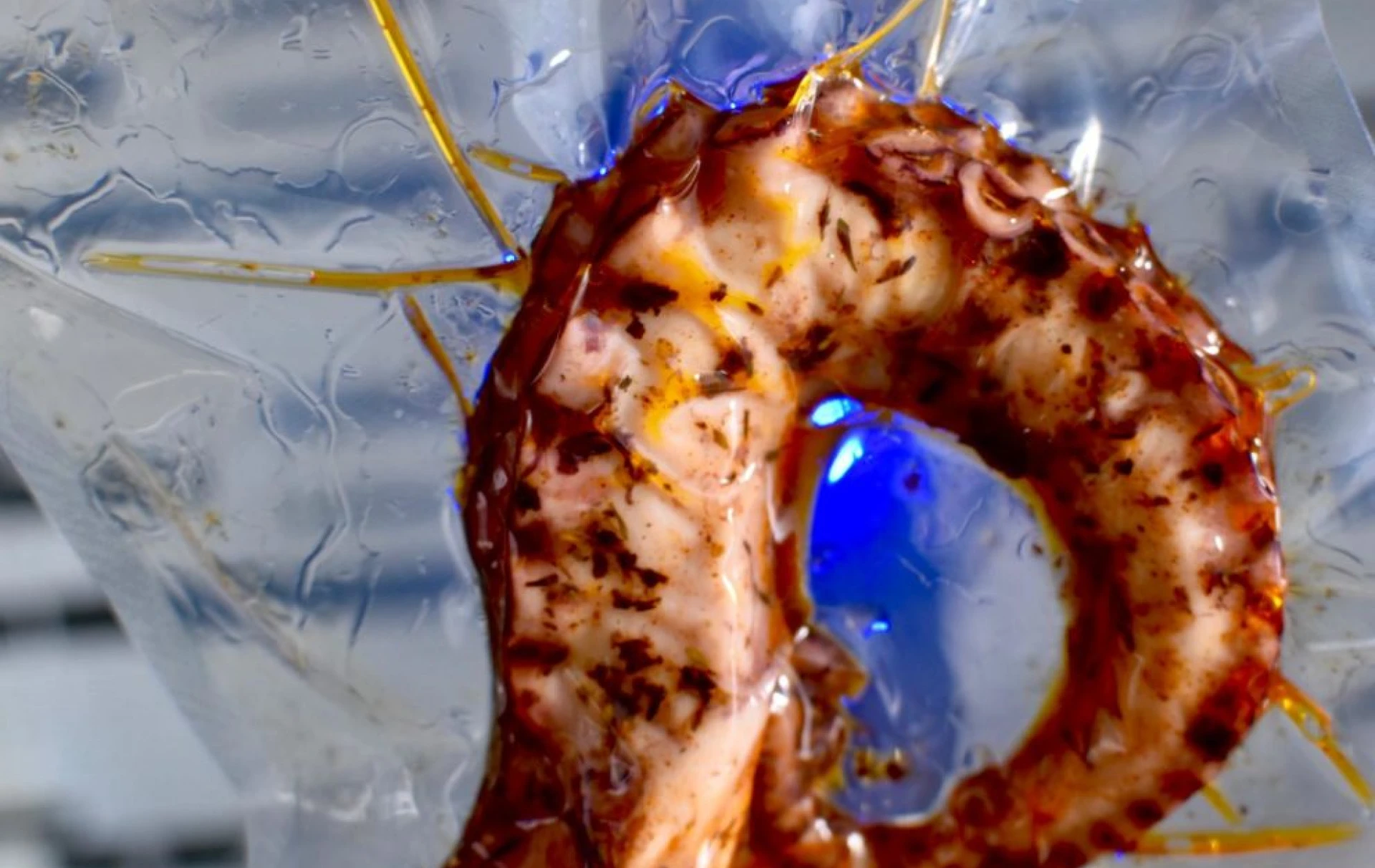 Using an offset spatula or spoon, smoothly cover each piece of salmon with a 2-millimeter layer of the blini mix.