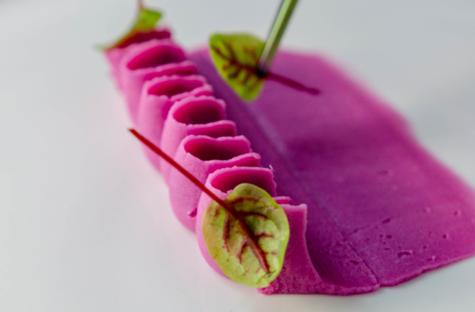 Using a sharp knife, slice thin pieces of apple and roll into a cone shape. Set aside and reserve for next step.